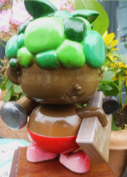 その後しばらく音沙汰がなかったのですが、いつの間にかデザインした社員がせっせとオールハンドで樹脂を削り、立体にしていました。名前も「きのっぴー」であると判明。そうだったのか!塗装までしてマスターモデルの完成です。こんちは。